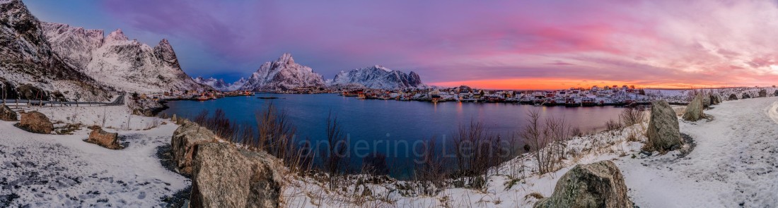 Reine, Lofoten Islands, Norway at mid day in the winter when the sun never rises.